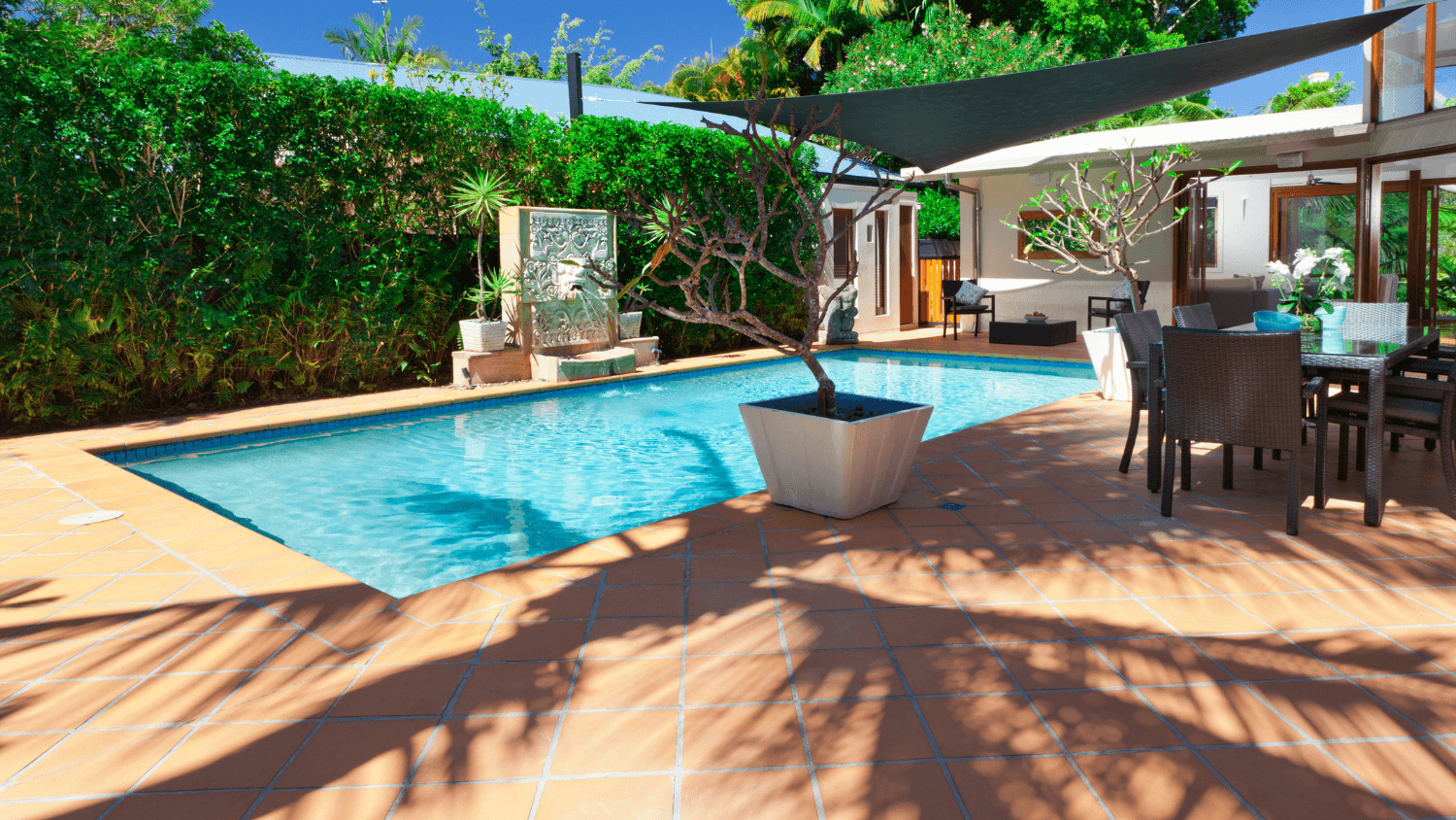 - Des coins ombragés avec des pergolas ou des voiles d’ombrage pour se protéger du soleil tout en profitant de l’extérieur.