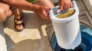 Si vous êtes entouré d’arbres, il y a fort à parier que votre piscine est souvent recouverte de feuilles, de petites branches ou de petites épines. Sans compter tous les insectes qui flottent à la surface de votre eau! Il est donc important de passer le filet régulièrement afin d’enlever le surplus de débris en tout genre qui peut s’accumuler rapidement. Ce n’est d’ailleurs pas qu’une question d’esthétique, ces débris peuvent contribuer à créer des petits problèmes s’ils entravent le drain de fond par exemple. Afin d’assurer la filtration optimale de votre eau, nous vous recommandons de vider et de nettoyer régulièrement le panier de l’écumoire et de la pompe afin de vous débarrasser des débris qui peuvent s’y loger. Nous vous conseillons aussi de vérifier occasionnellement les filtres et de les nettoyer ou, au besoin, de les remplacer.