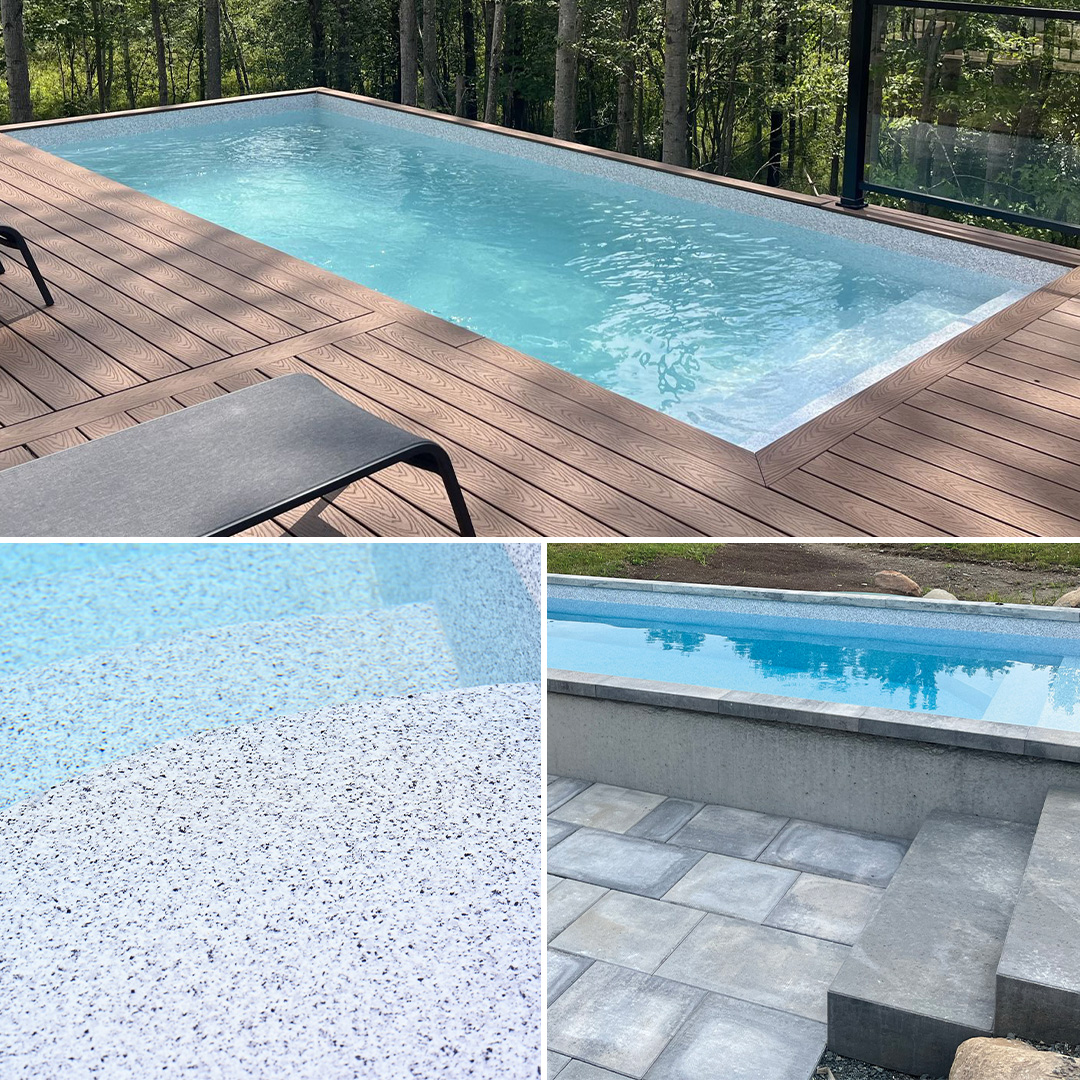 Nous savons que l’apparence d’une piscine creusée est un élément primordial, tout comme la qualité de celle-ci. Nous avons notamment choisi ces membranes armées en raison de leur grande qualité et de leur design élégant et esthétique. Par ailleurs, on les apprécie aussi beaucoup pour leur relief qui imite les éléments naturels (marbre, granit, ardoise par exemple) et qui confère un fini luxueux à nos piscines.