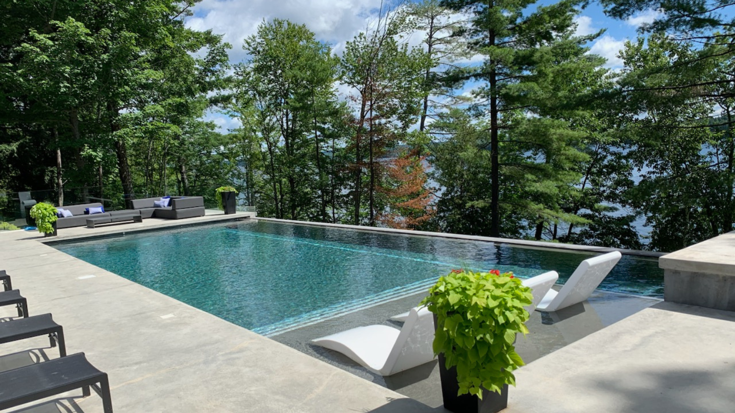 Pour les espaces plus réduits, les petites piscines sont le choix par excellence. En 2025, elles se perfectionneront avec des fonctionnalités haut de gamme telles que des jets de massage, des systèmes de chauffage intelligents, et des lumières DEL intégrées pour créer une atmosphère chaleureuse en soirée. Ces petites piscines offrent tout le luxe d’une grande, avec une empreinte réduite. On l’avoue, nous avons un petit faible pour cette tendance! Nos piscines prémoulées en béton sont offertes en trois formats rectangulaires et notre plus petit format, 8’ x 16’, aura définitivement encore plus la cote!